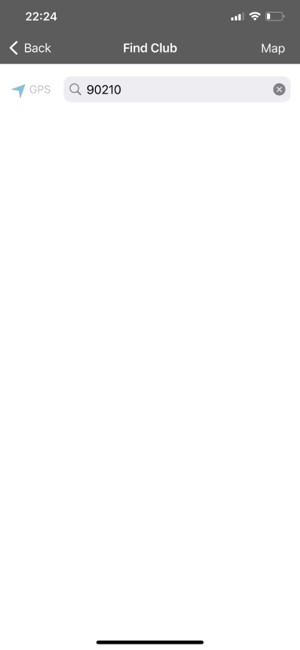 Find club feature does not show results for any submitted postal codes or zip code; despite hint text in the search bar saying to search with those methods.