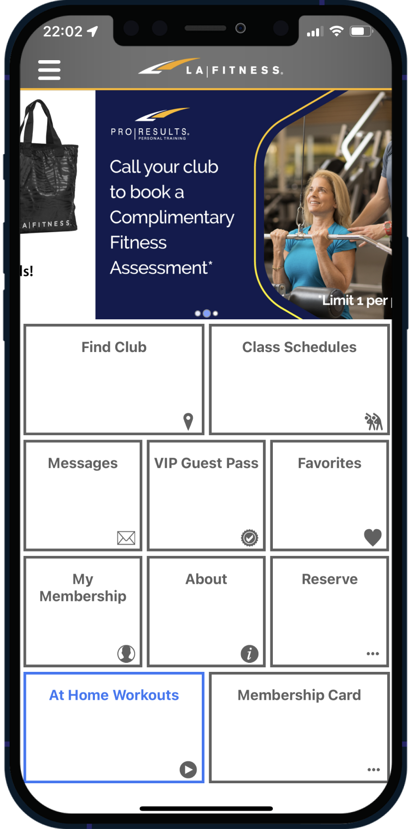 The LA Fitness app's menu display on the home page is unique. When looking at other fitness and social media apps; users tend to be present with a fixed tab at the bottom of the page as a "menu".